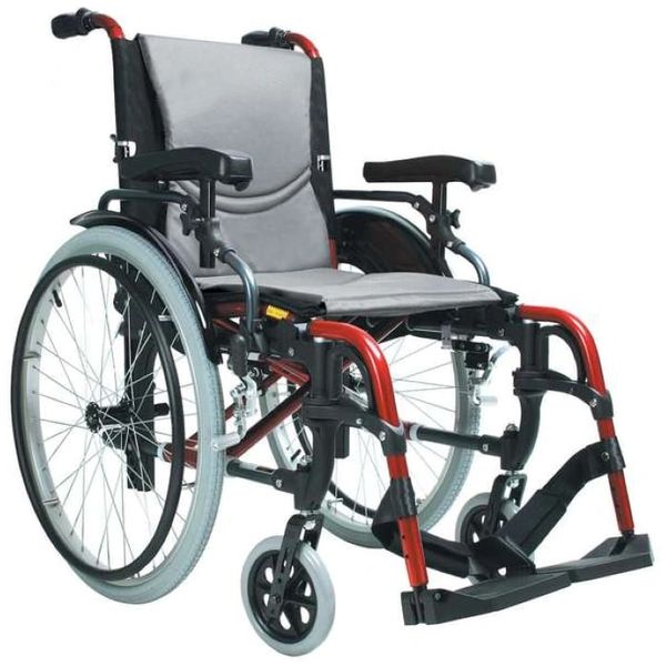 We carry a large array of standard wheelchairs, from 14" pediatric chairs to 22" chairs (and can get others on order, including custom chairs from Ki Mobility. We stock basic 'hospital-style' chairs, as well as next-level chairs from Karman (pictured) and Strongback, which offer greater features at about 10 lbs less weight.